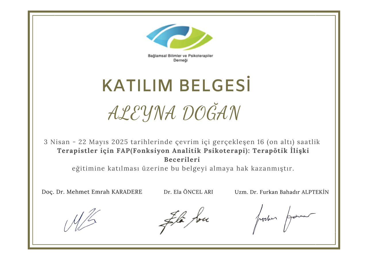 Merhaba, ben Klinik Psikolog Aleyna Doğan.